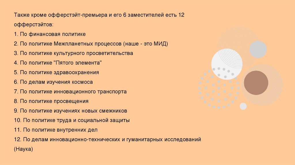 Также кроме офферстэйт-премьера и его 6 заместителей есть 12офферстэйтов: