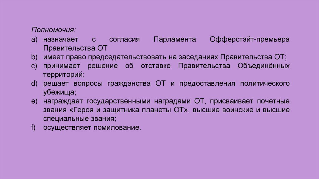 ■ Пост офферстэйт-премьера может занять только человек, назначенный Президентом