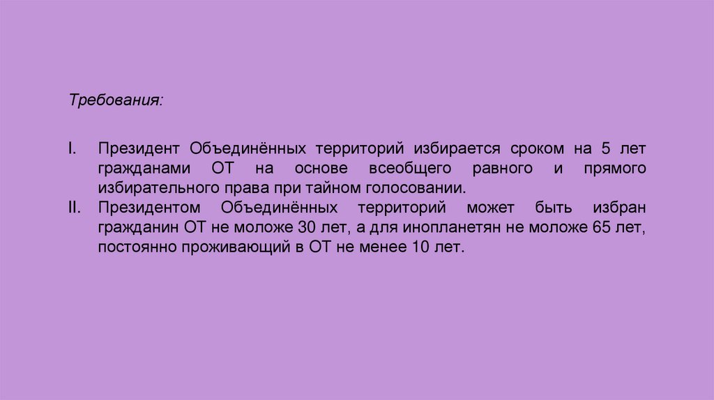 Президентом Объединённых территорий может быть избран