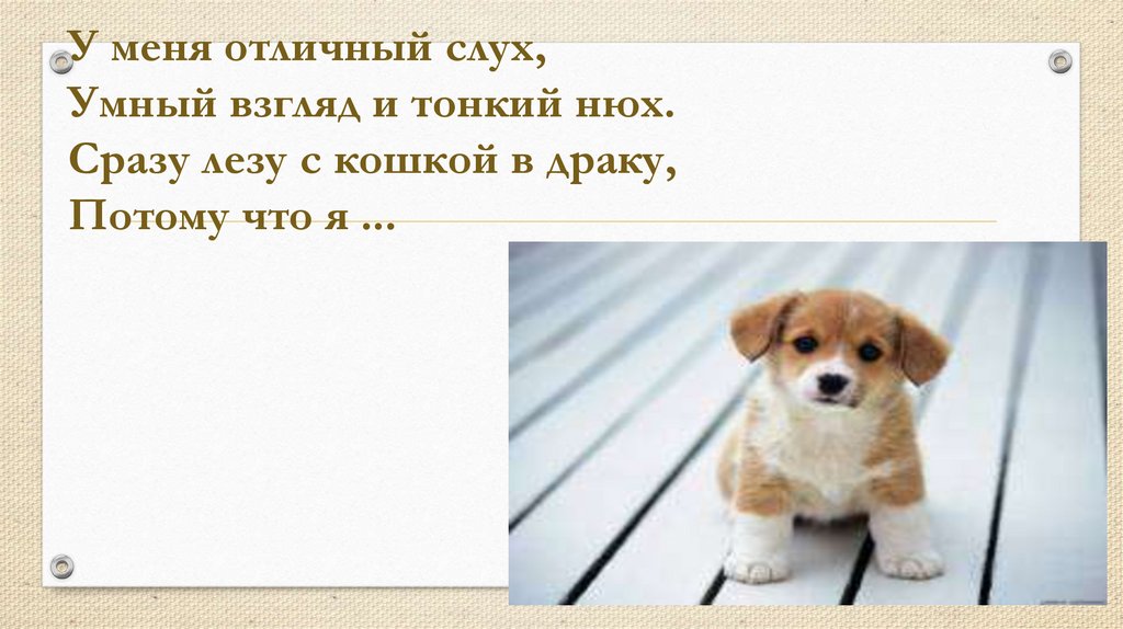 У меня отличный слух,Умный взгляд и тонкий нюх.