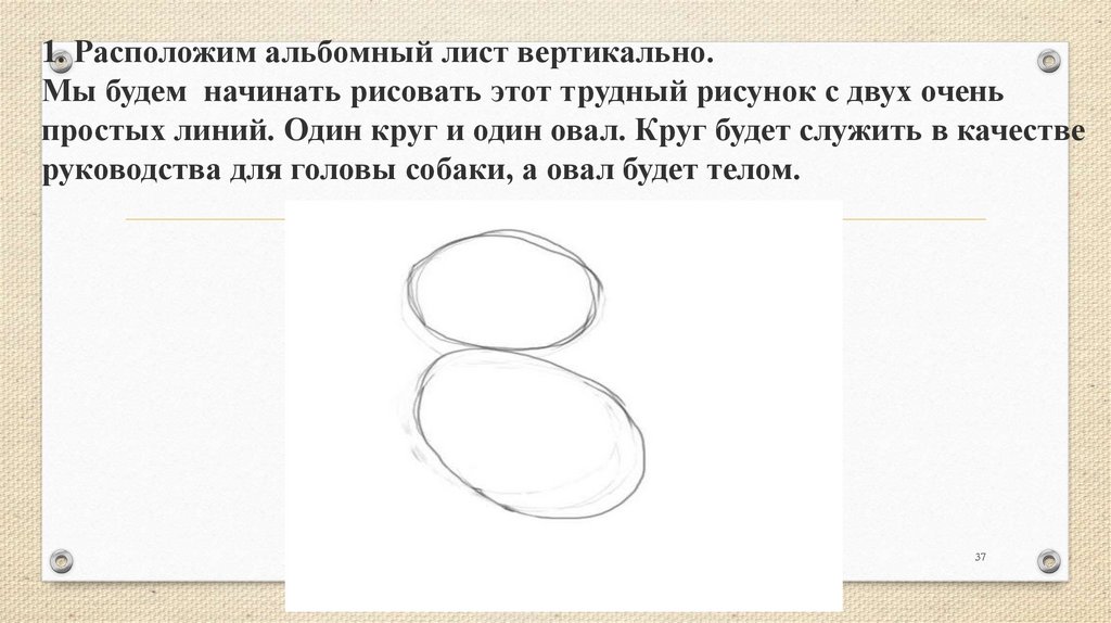 1. Расположим альбомный лист вертикально.Мы будем начинать рисовать этот трудный рисунок с двух очень