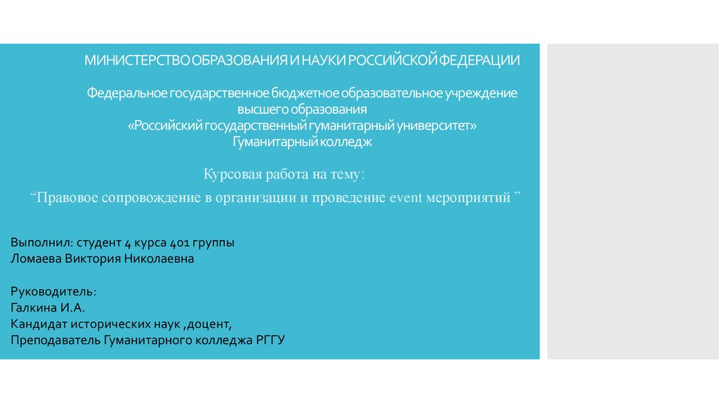 “Правовое сопровождение в организации и проведение event мероприятий ”