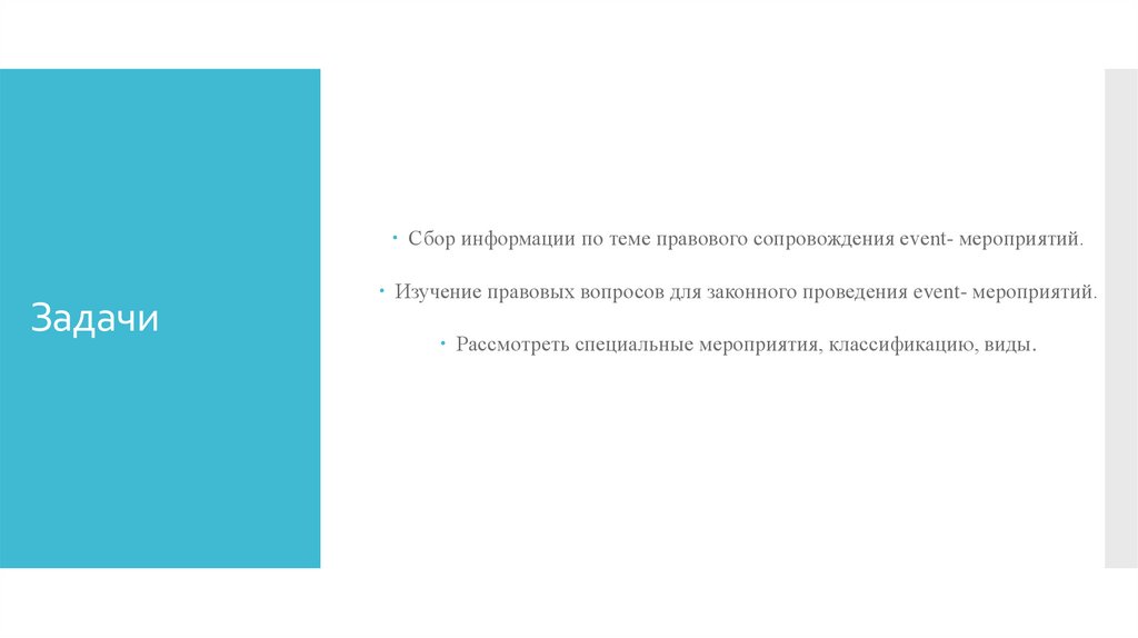 Сбор информации по теме правового сопровождения event- мероприятий.Задачи