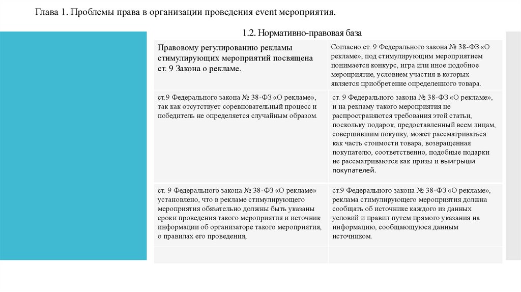 Глава 1. Проблемы права в организации проведения event мероприятия.1.2. Нормативно-правовая база