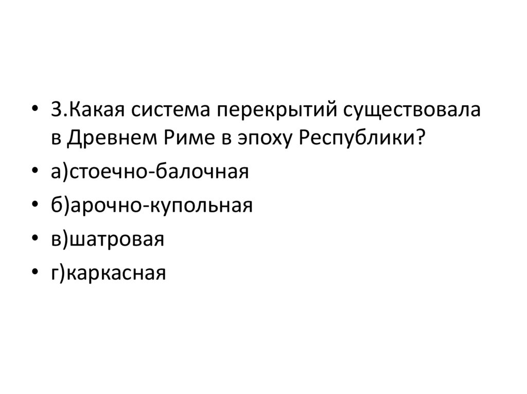 • 3.Какая система перекрытий существовалав Древнем Риме в эпоху Республики?