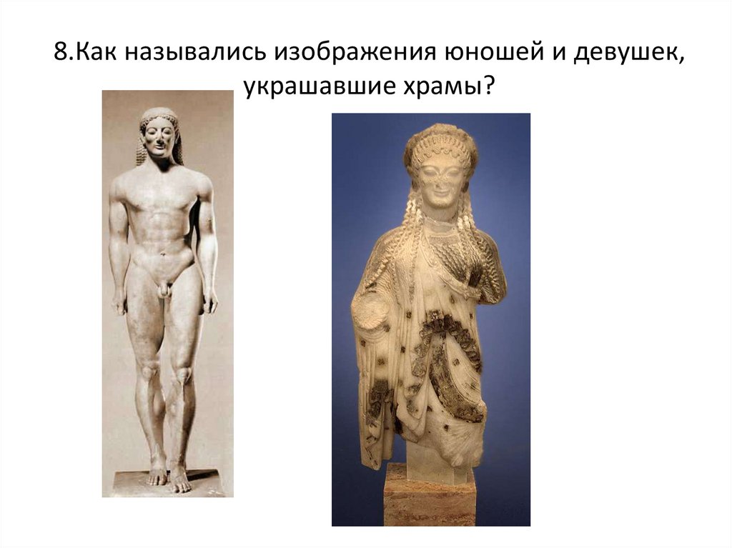 8.Как назывались изображения юношей и девушек,украшавшие храмы?