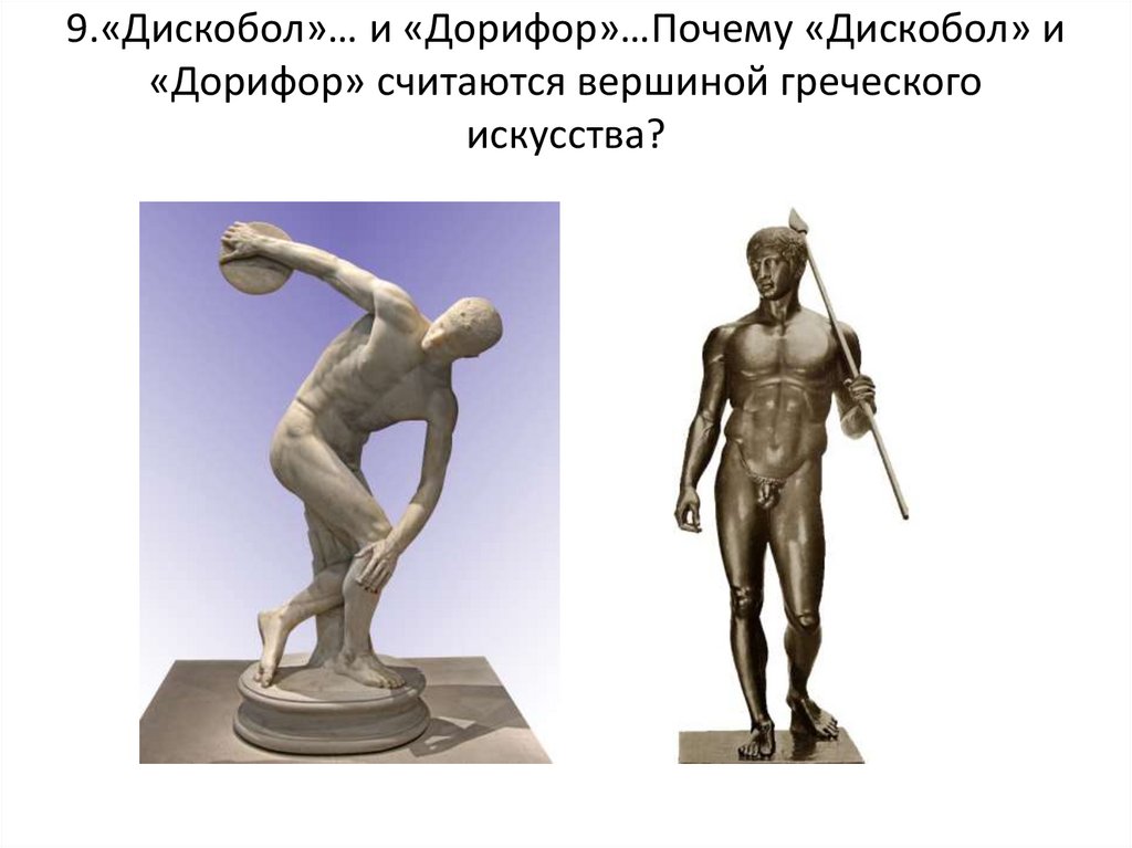 9.«Дискобол»… и «Дорифор»…Почему «Дискобол» и«Дорифор» считаются вершиной греческого