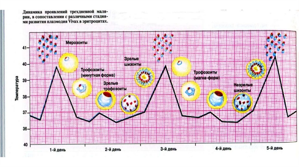 Малярия — антропонозная протозойная болезнь, вызываемаяпростейшими рода Plasmodium', сопровождается приступами