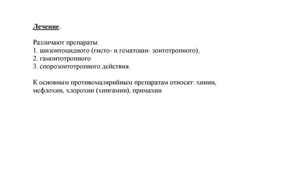 1. шизонтоцидного (гисто- и гематоши- зонтотропного),