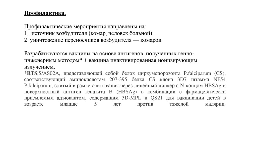 *RTS,S/AS02A, представляющей собой белок циркумспорозоита Р.falciparum (CS),