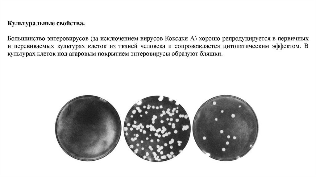 культурах клеток под агаровым покрытием энтеровирусы образуют бляшки.