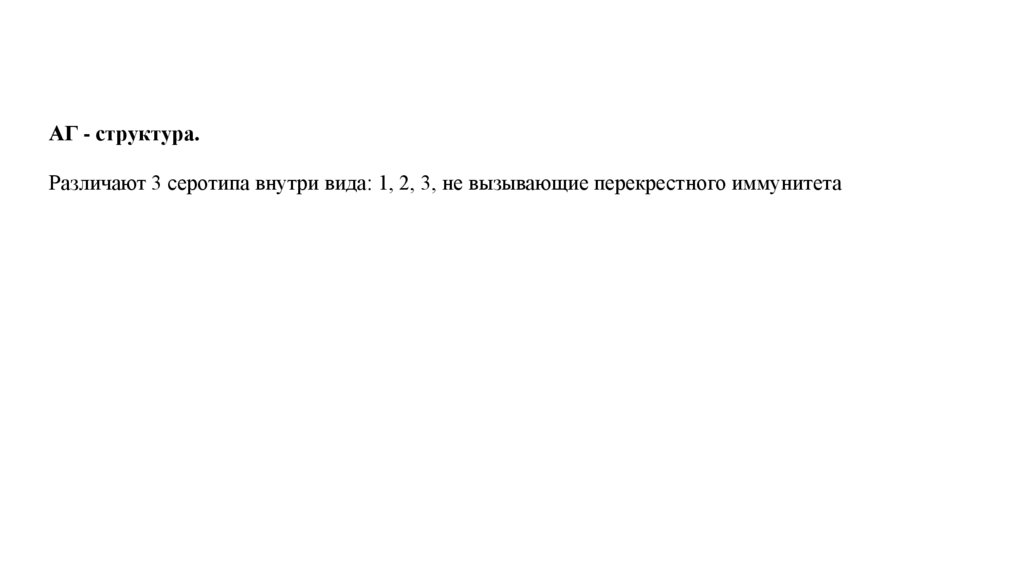 АГ - структура.Различают 3 серотипа внутри вида: 1, 2, 3, не вызывающие перекрестного иммунитета