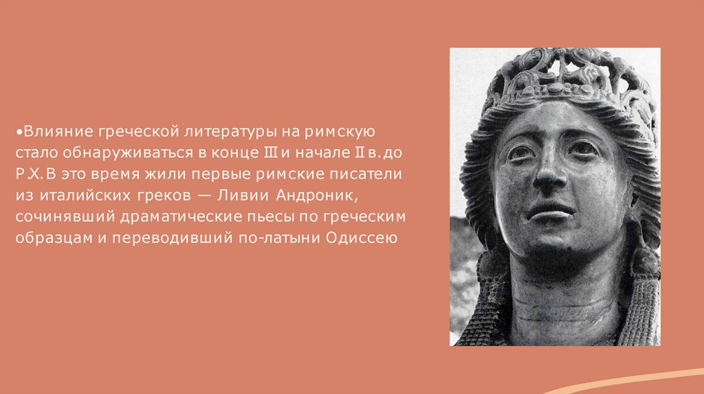 •Влияние греческой литературы на римскуюстало обнаруживаться в конце III и начале II в.до