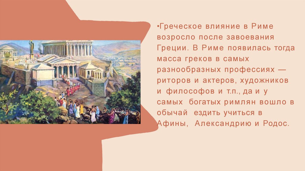 •Греческ ое влияние в Р и м евозросл о после завоевания