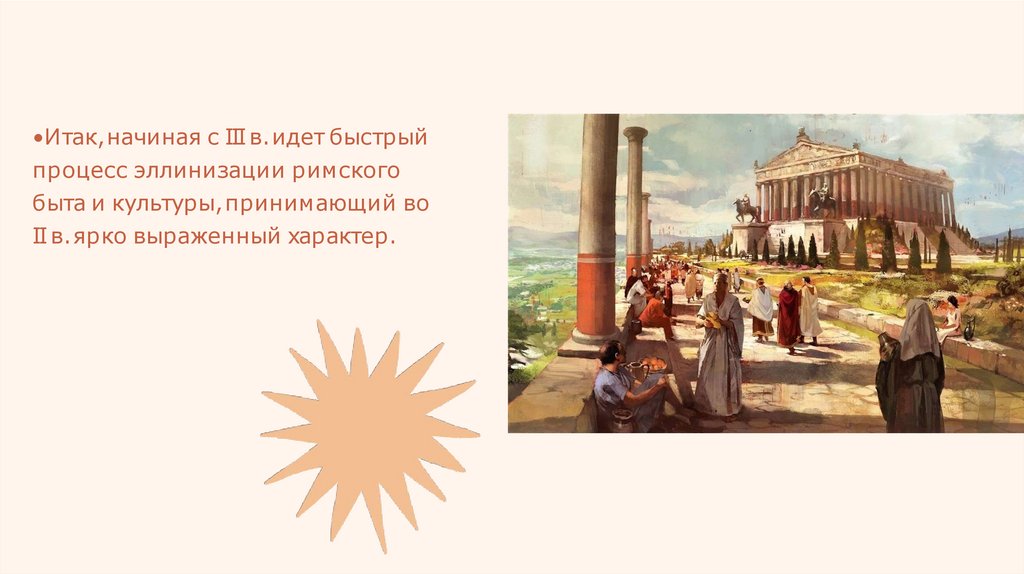 •Итак,начиная с III в.идет быстрыйпроцесс эллинизации римского