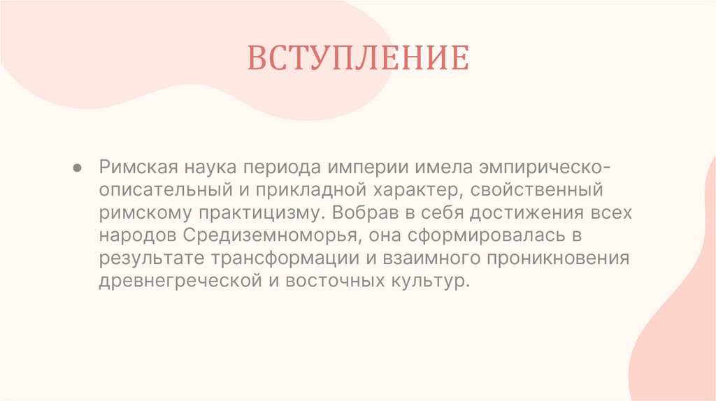 ВСТУПЛЕНИЕ● Римская наука периода империи имела эмпирическоописательный и прикладной характер, свойственный
