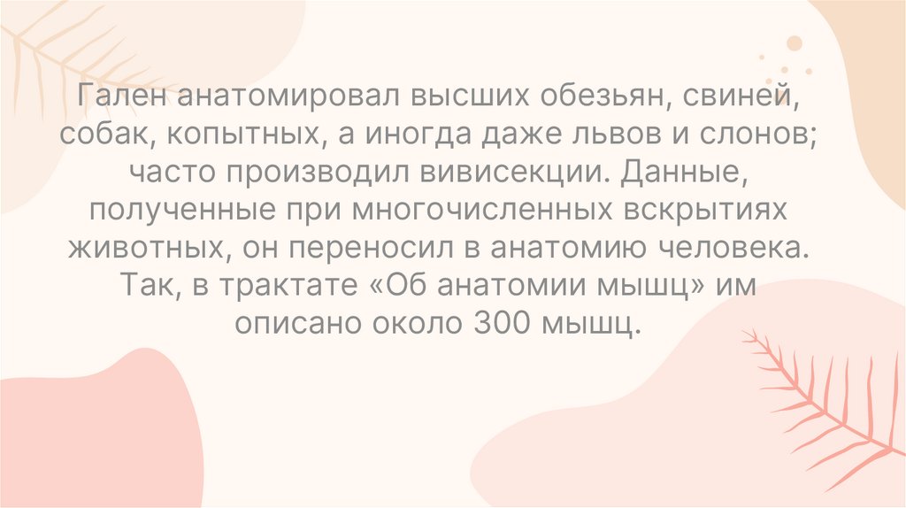 животных, он переносил в анатомию человека.