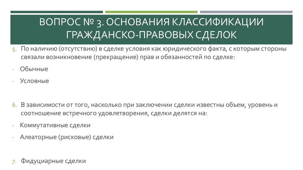 ВОПРОС № 3. ОСНОВАНИЯ КЛАССИФИКАЦИИГРАЖДАНСКО-ПРАВОВЫХ СДЕЛОК
