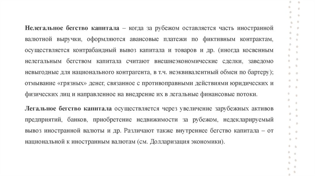 осуществляется контрабандный вывоз капитала и товаров и др. (иногда косвенным