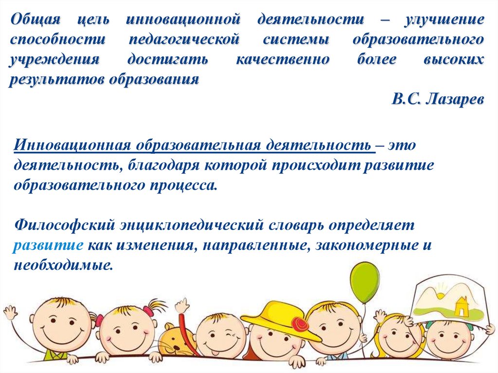 Общая цель инновационной деятельности – улучшениеспособности педагогической системы образовательного