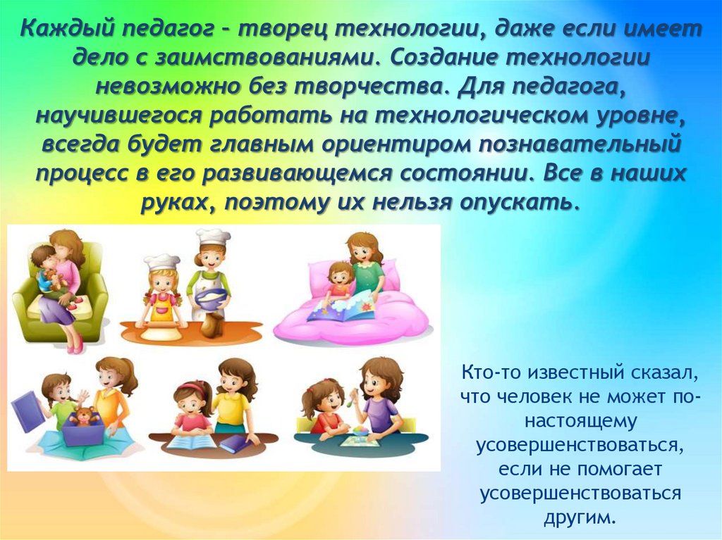 Каждый педагог – творец технологии, даже если имеетдело с заимствованиями. Создание технологии