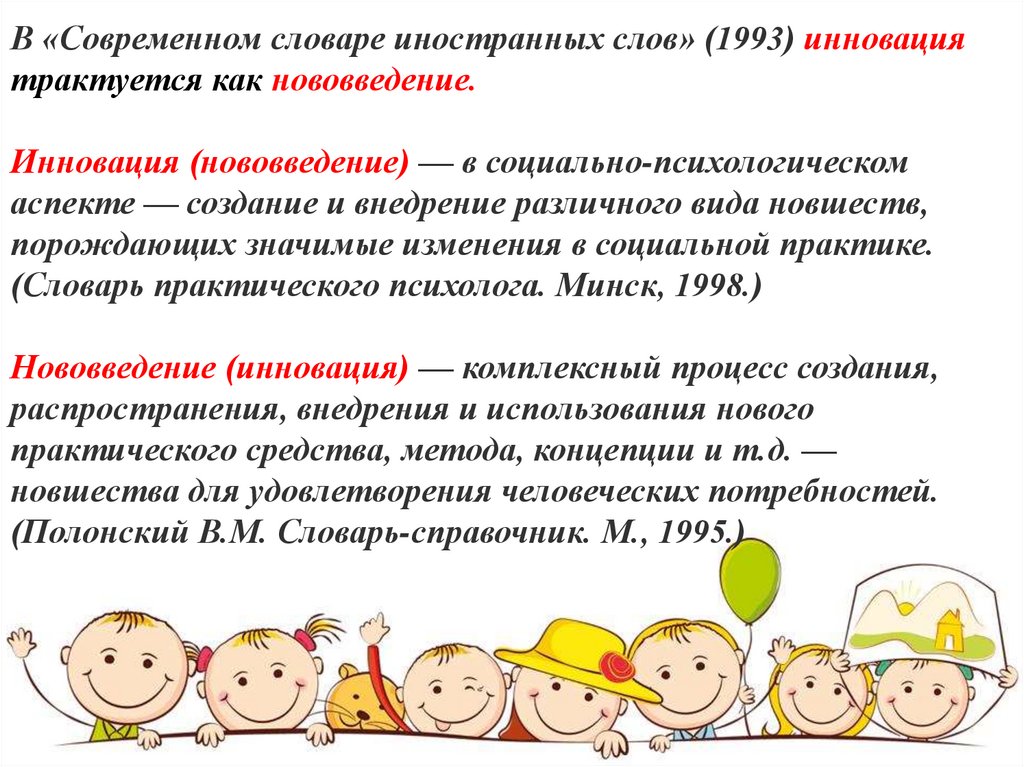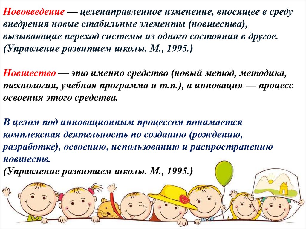 Нововведение — целенаправленное изменение, вносящее в средувнедрения новые стабильные элементы (новшества),