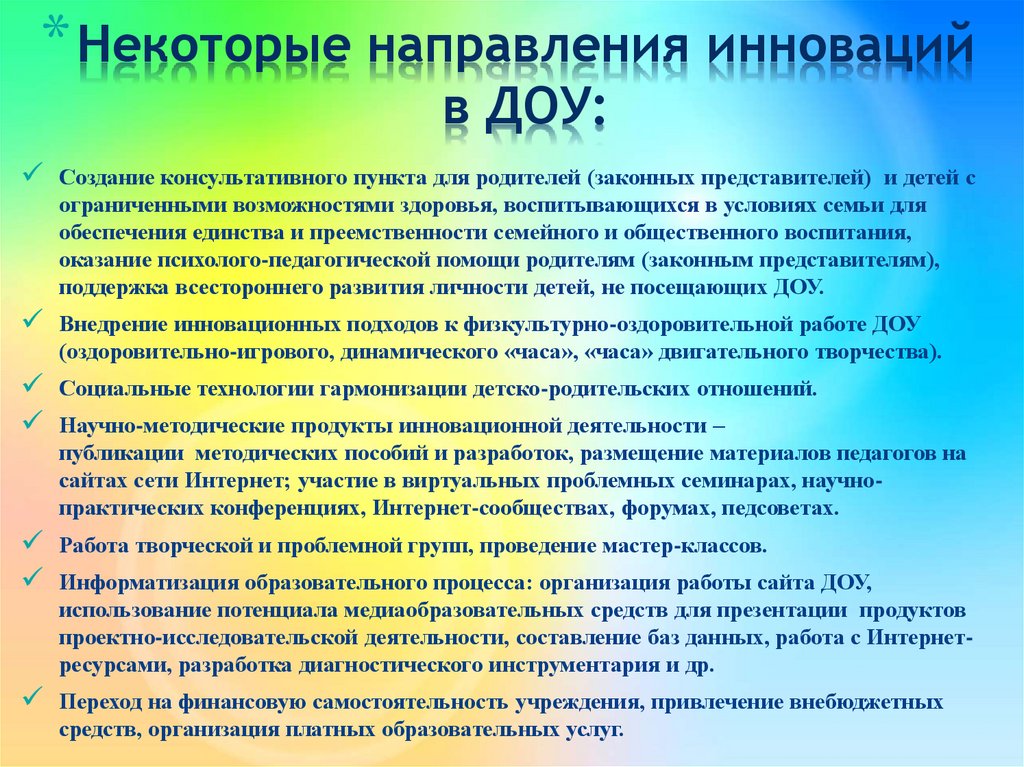 Внедрение инноваций в работу ДОУ, требует изменений и обновлений в