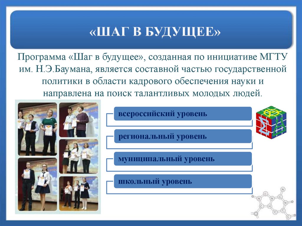 Программа «Шаг в будущее», созданная по инициативе МГТУим. Н.Э.Баумана, является составной частью государственной