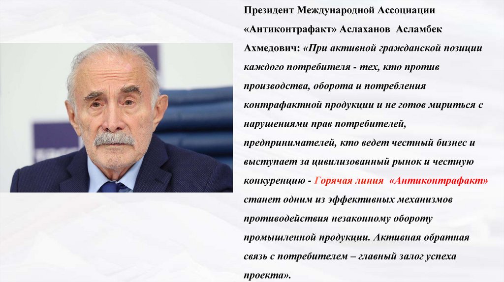 Президент Международной Ассоциации«Антиконтрафакт» Аслаханов Асламбек