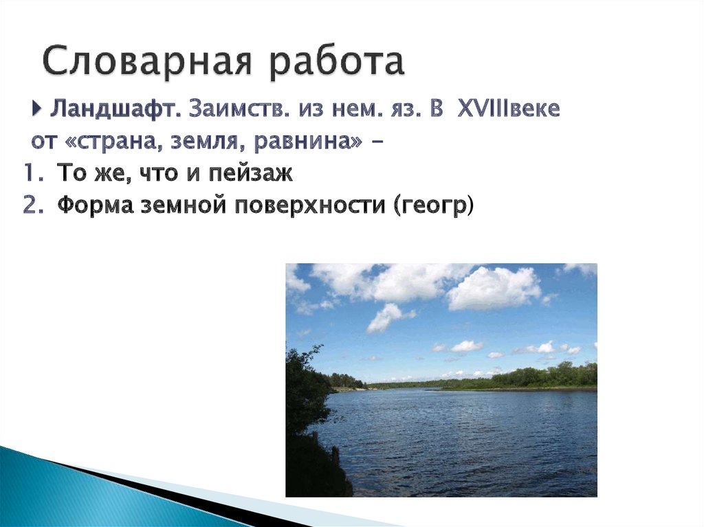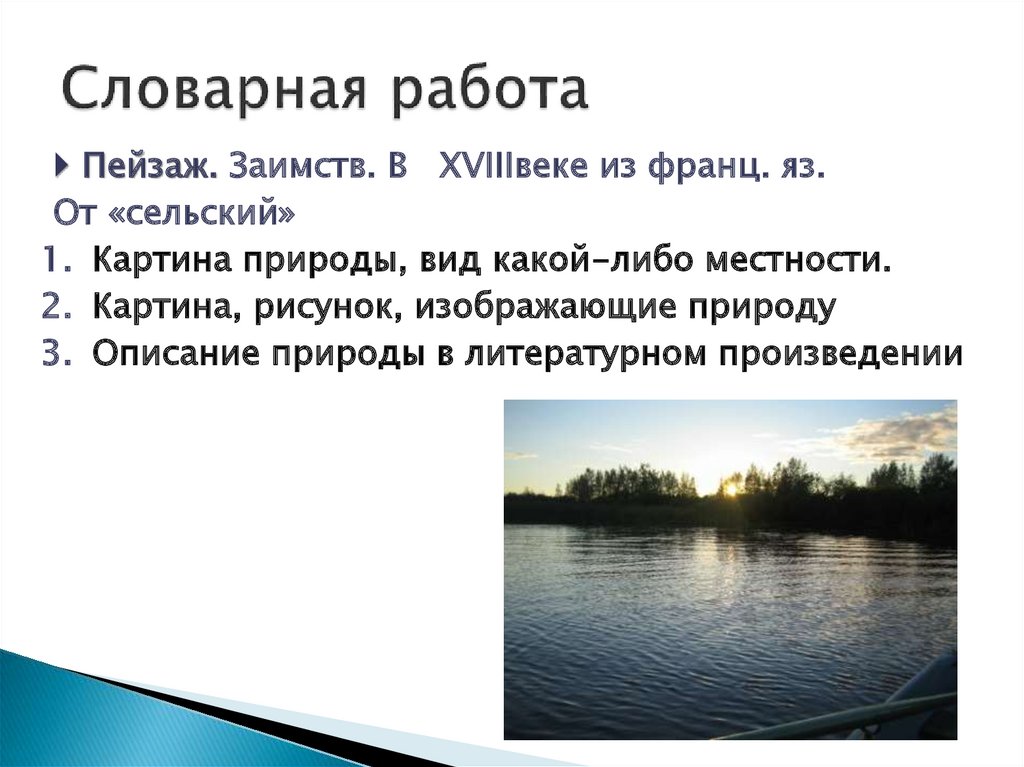 Пейзаж. Заимств. В XVIIIвеке из франц. яз.От «сельский»