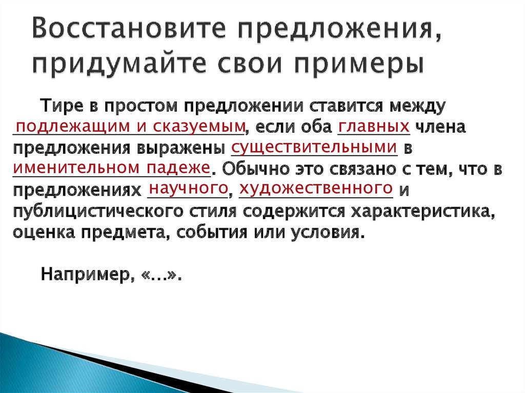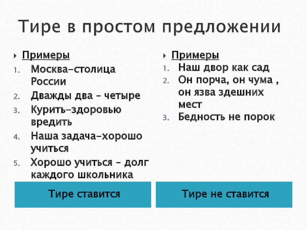 Тире ставится