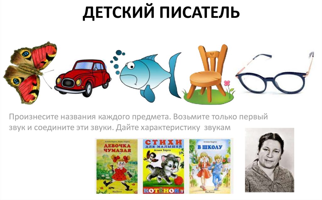 ДЕТСКИЙ ПИСАТЕЛЬПроизнесите названия каждого предмета. Возьмите только первый