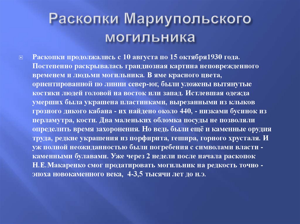 Уже современники оценили значениеМариупольского могильника. Учитель