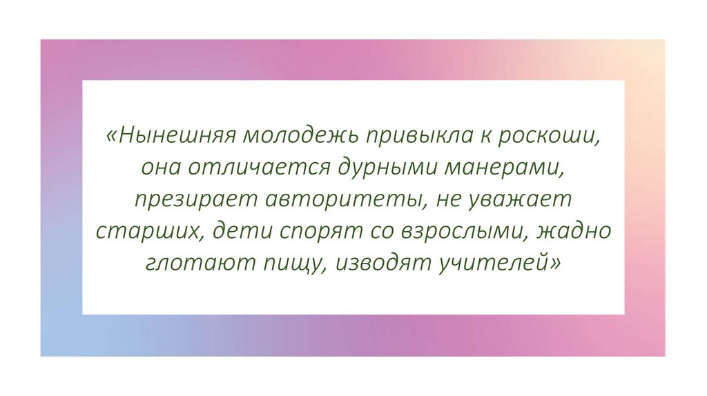 «Нынешняя молодежь привыкла к роскоши,она отличается дурными манерами,
