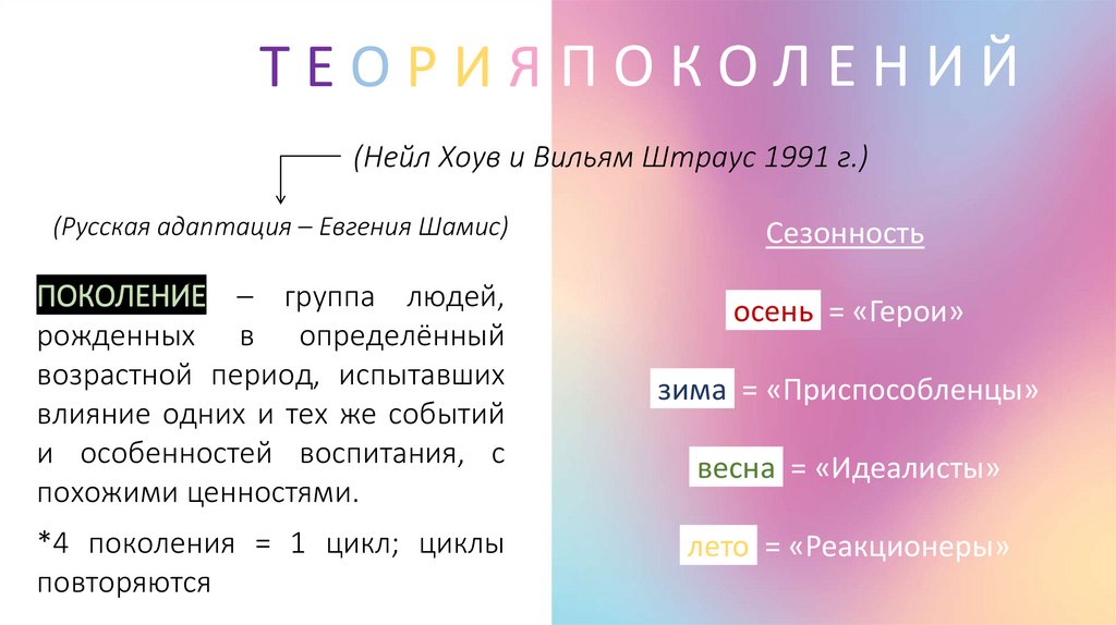 ТЕОРИЯПОКОЛЕНИЙ(Нейл Хоув и Вильям Штраус 1991 г.)