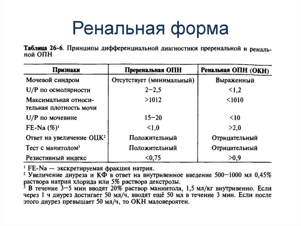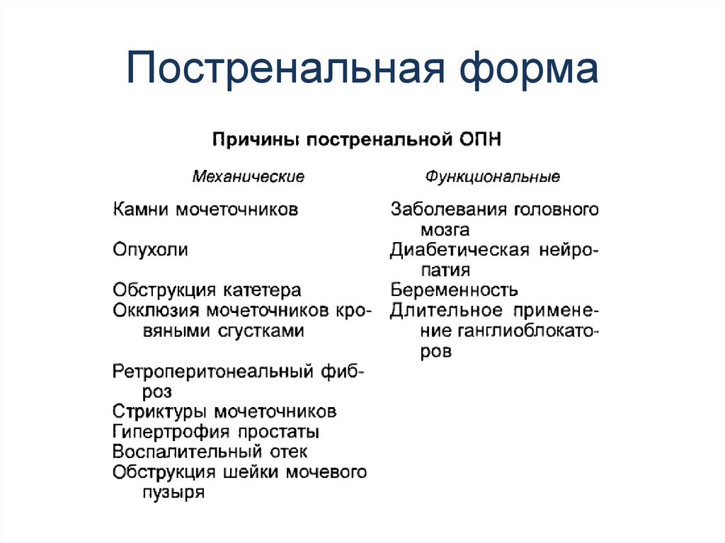 Постренальная форма.Диагностика