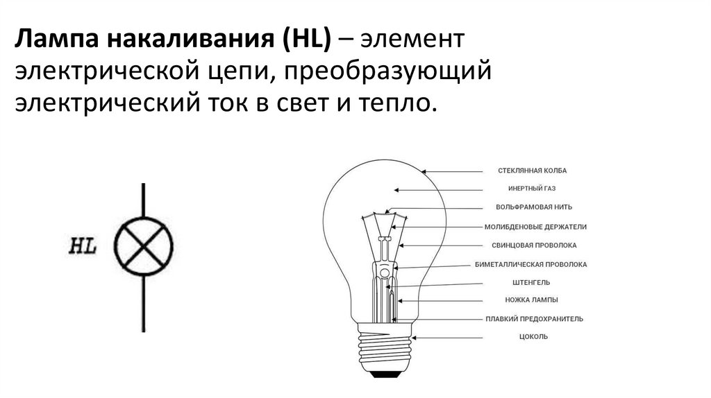 Лампа накаливания (HL) – элементэлектрической цепи, преобразующий