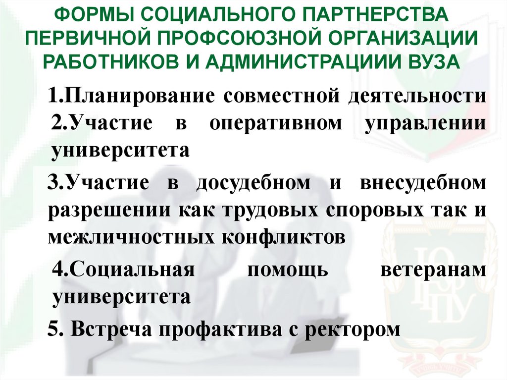 ФОРМЫ СОЦИАЛЬНОГО ПАРТНЕРСТВАПЕРВИЧНОЙ ПРОФСОЮЗНОЙ ОРГАНИЗАЦИИ