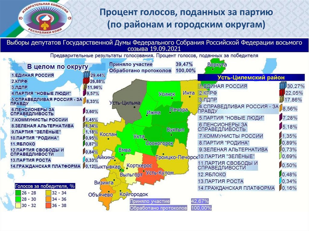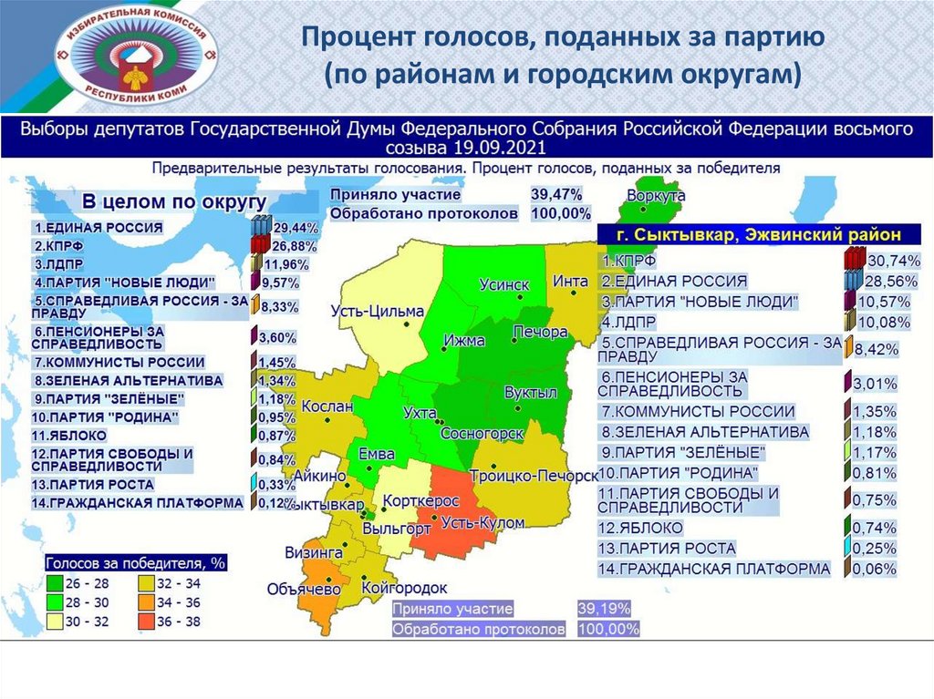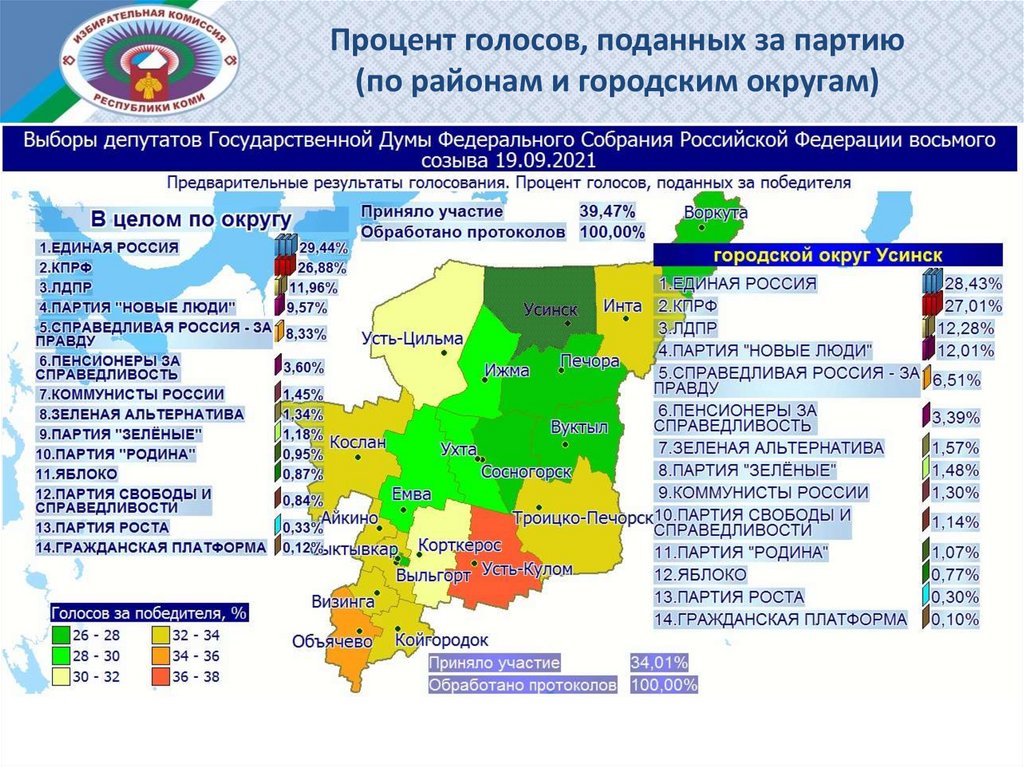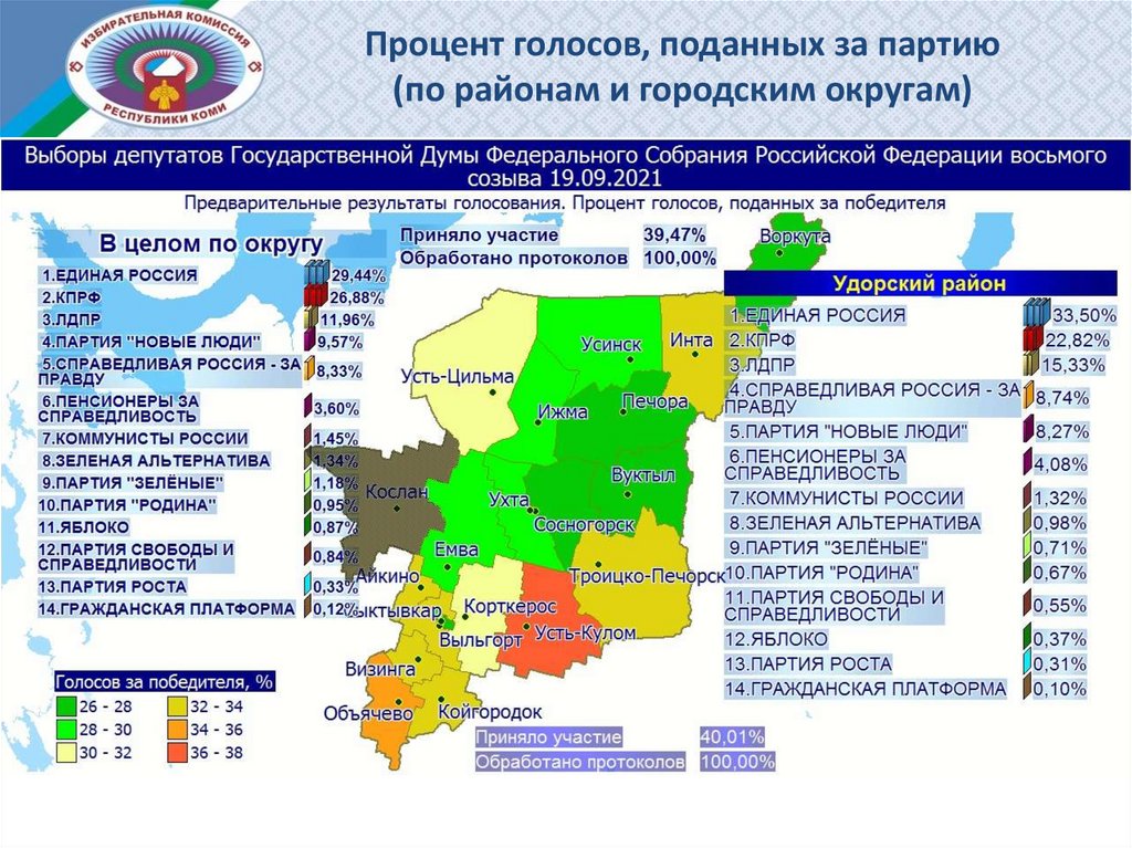 Процент голосов, поданных за партию (по районам и городским округам)