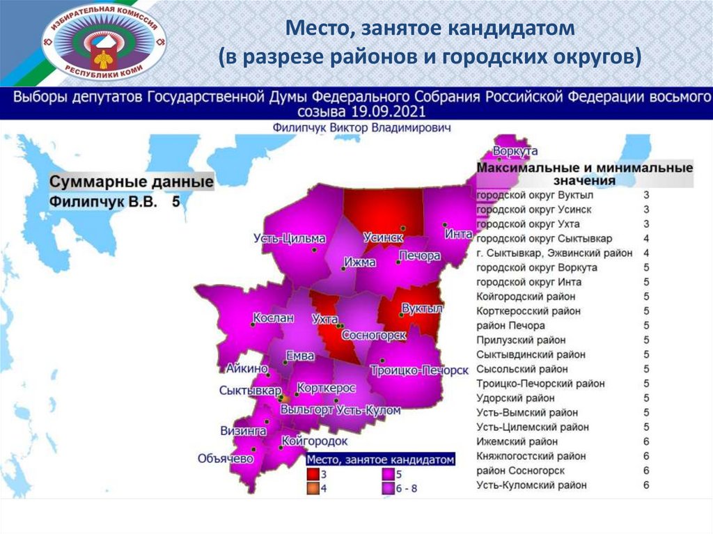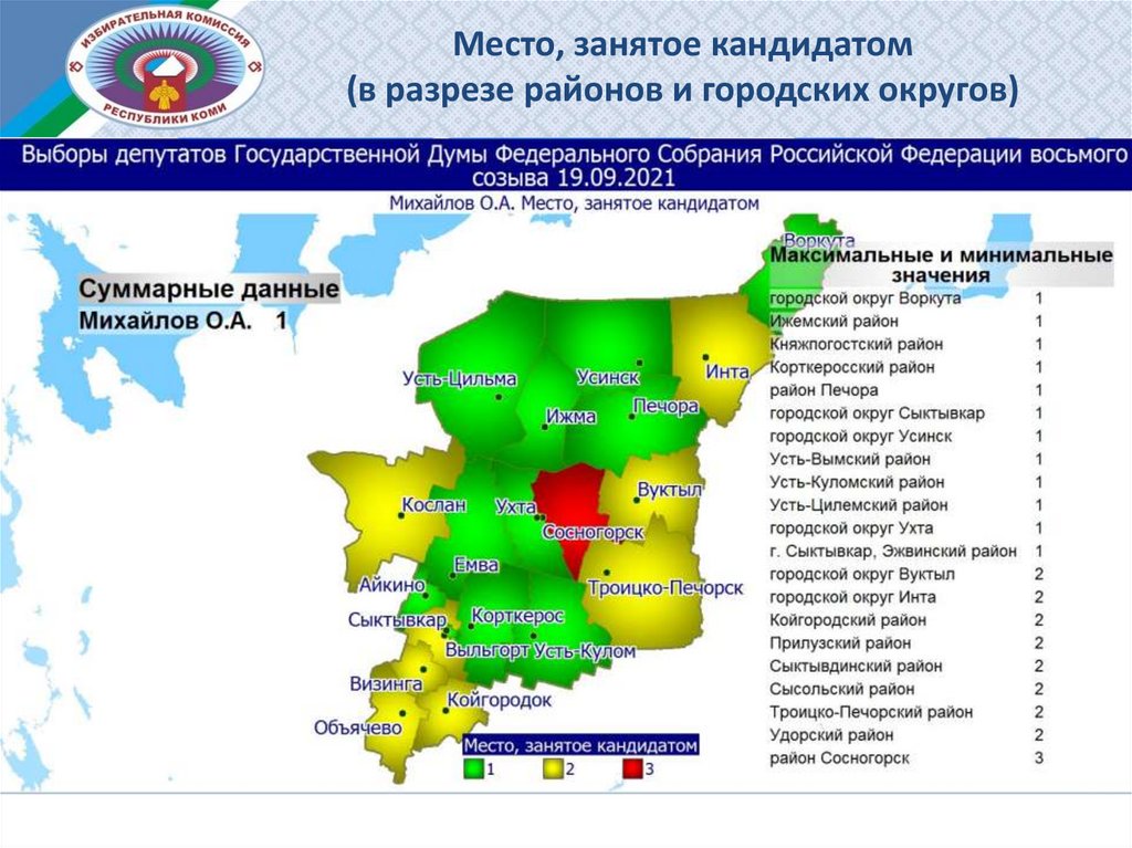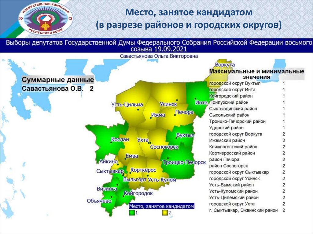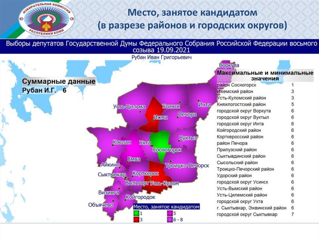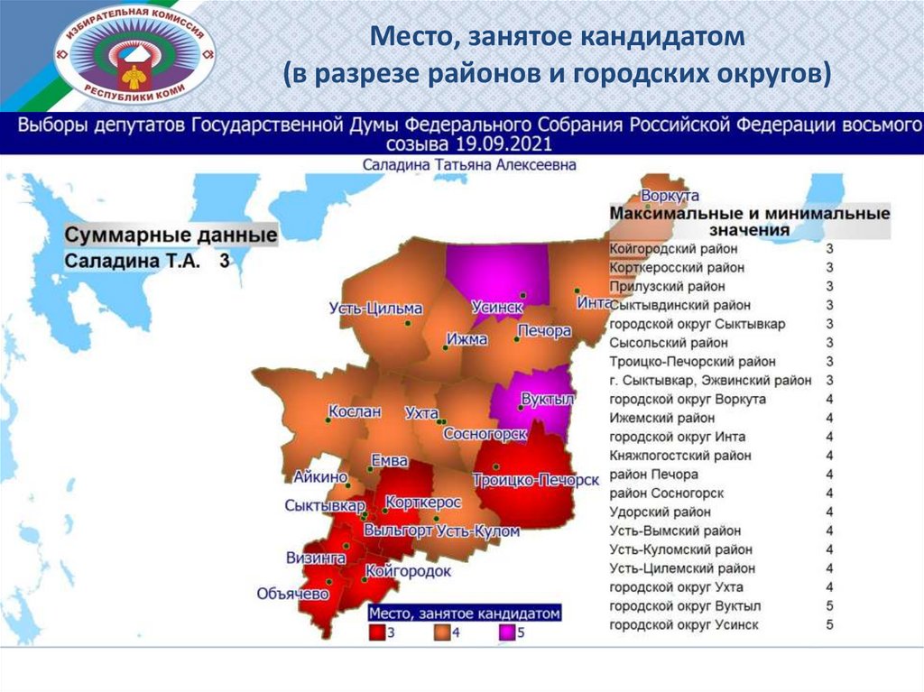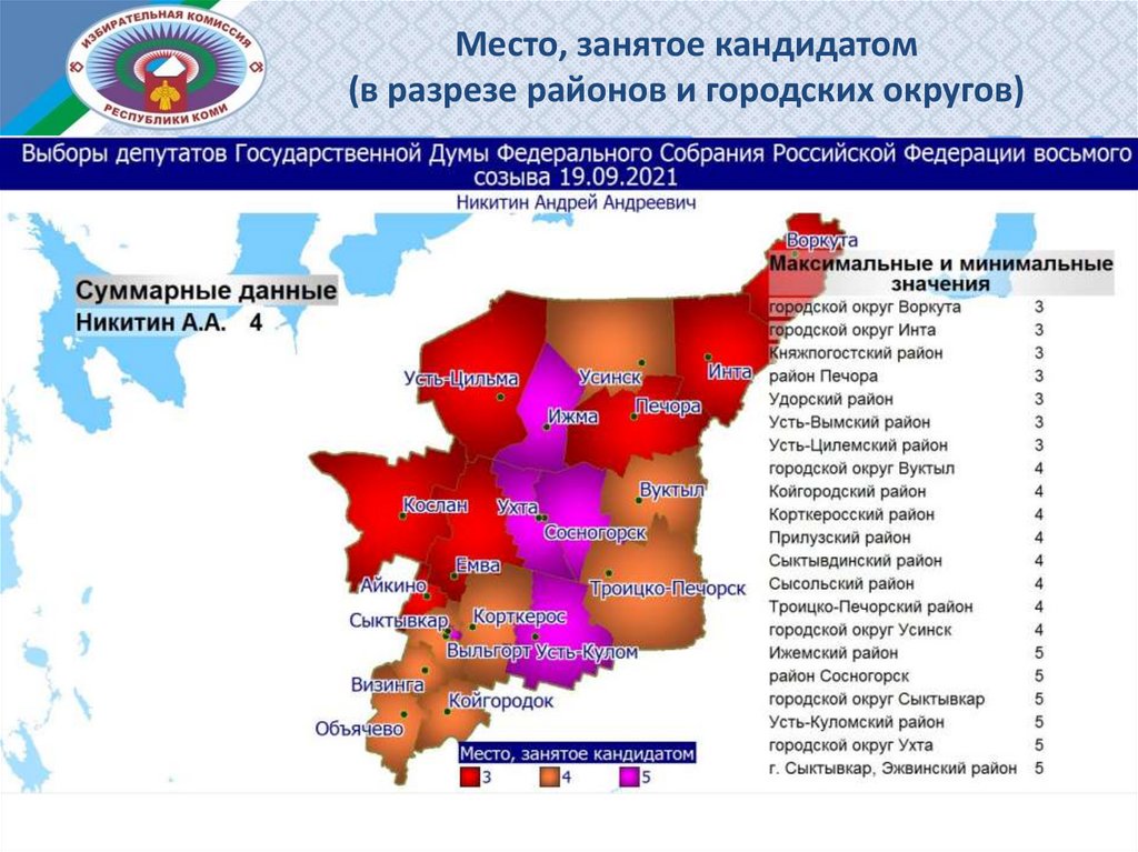 Место, занятое кандидатом (в разрезе районов и городских округов)