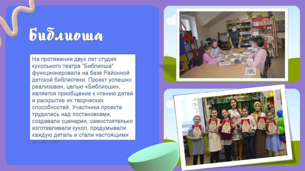 На протяжении двух лет студиякукольного театра "Библиоша"