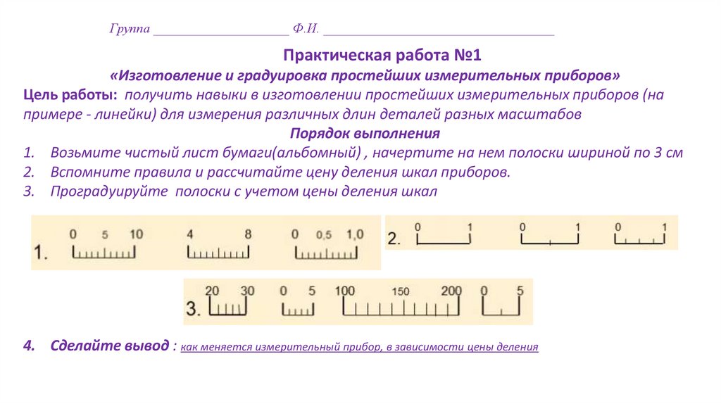 4. Сделайте вывод : как меняется измерительный прибор, в зависимости цены деления