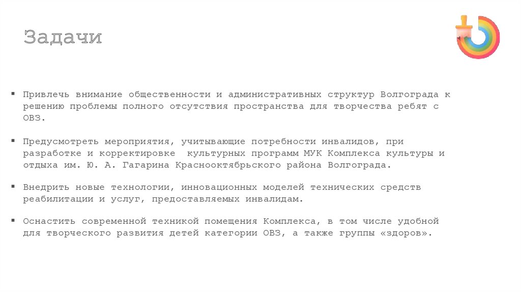 Привлечь внимание общественности и административных структур Волгограда крешению проблемы полного отсутствия пространства для творчества ребят с