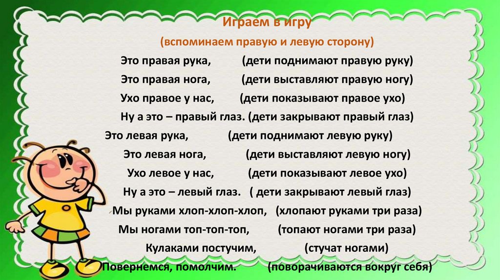 Ну а это – правый глаз. (дети закрывают правый глаз)