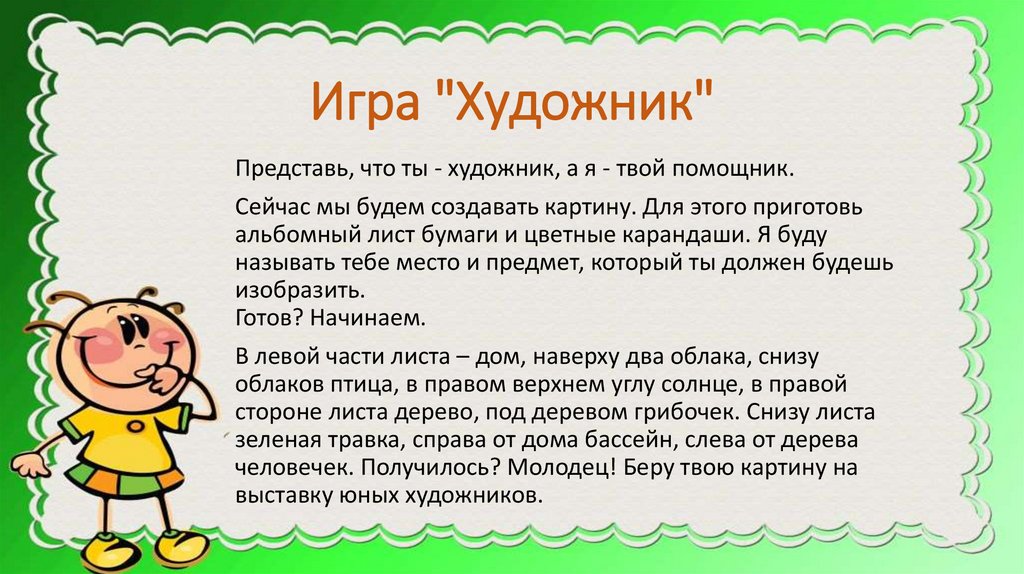 Игра "Художник"Представь, что ты - художник, а я - твой помощник.