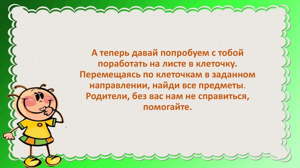 А теперь давай попробуем с тобойпоработать на листе в клеточку.