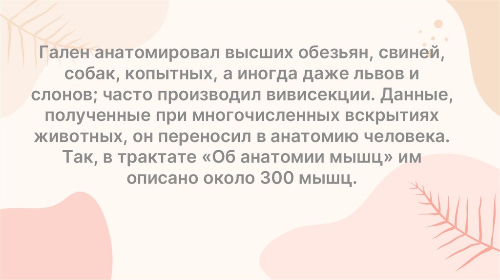 Гален анатомировал высших обезьян, свиней,собак, копытных, а иногда даже львов и
