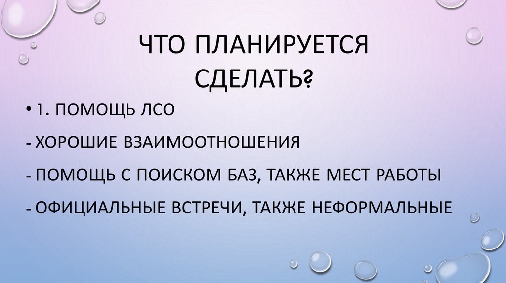 ЧТО ПЛАНИРУЕТСЯСДЕЛАТЬ?
