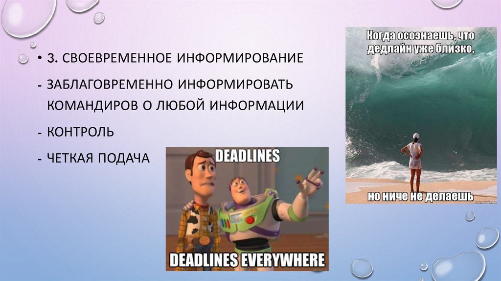 • 3. СВОЕВРЕМЕННОЕ ИНФОРМИРОВАНИЕ- ЗАБЛАГОВРЕМЕННО ИНФОРМИРОВАТЬ