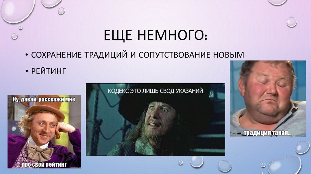 ЕЩЕ НЕМНОГО:• СОХРАНЕНИЕ ТРАДИЦИЙ И СОПУТСТВОВАНИЕ НОВЫМ